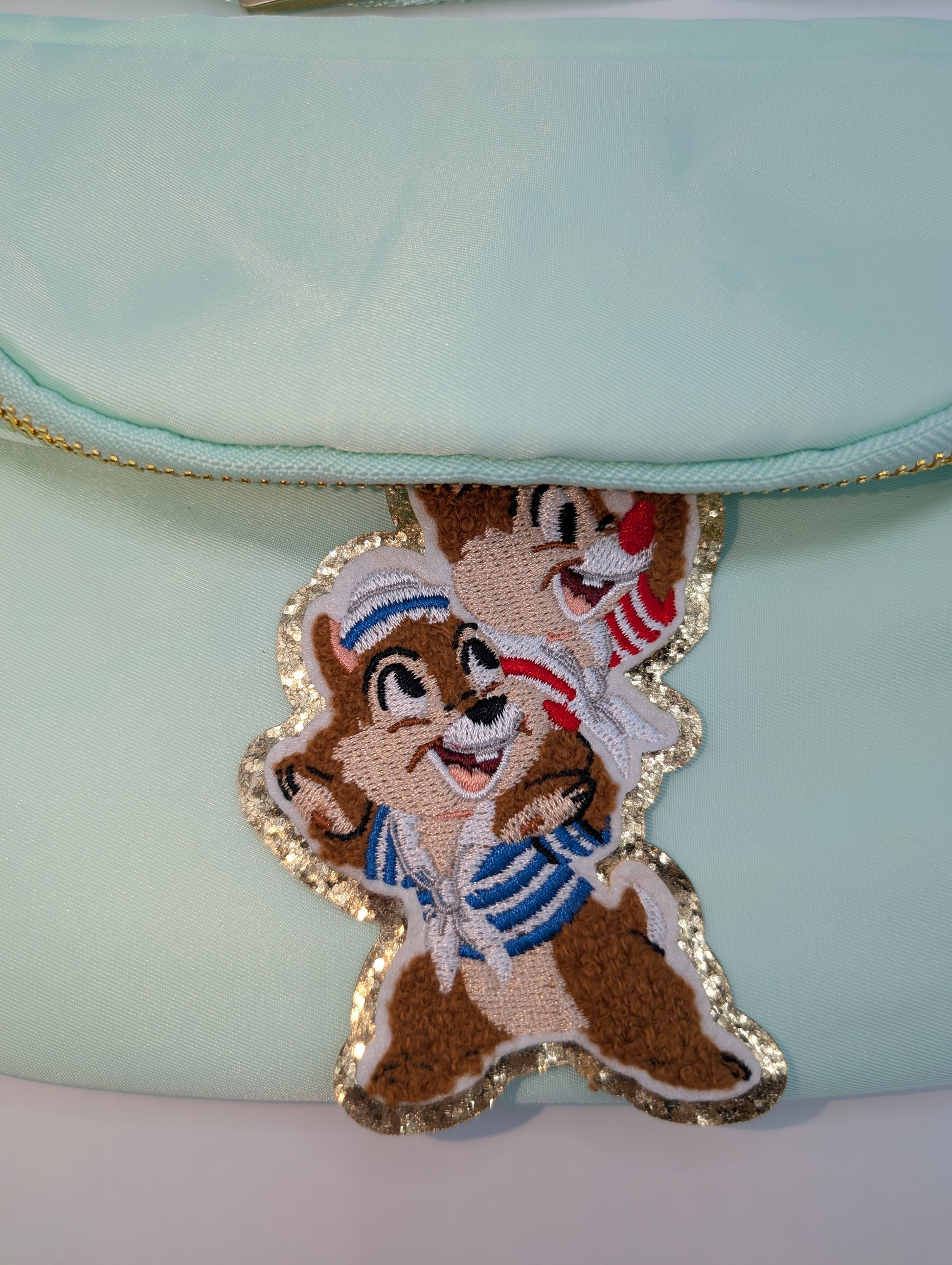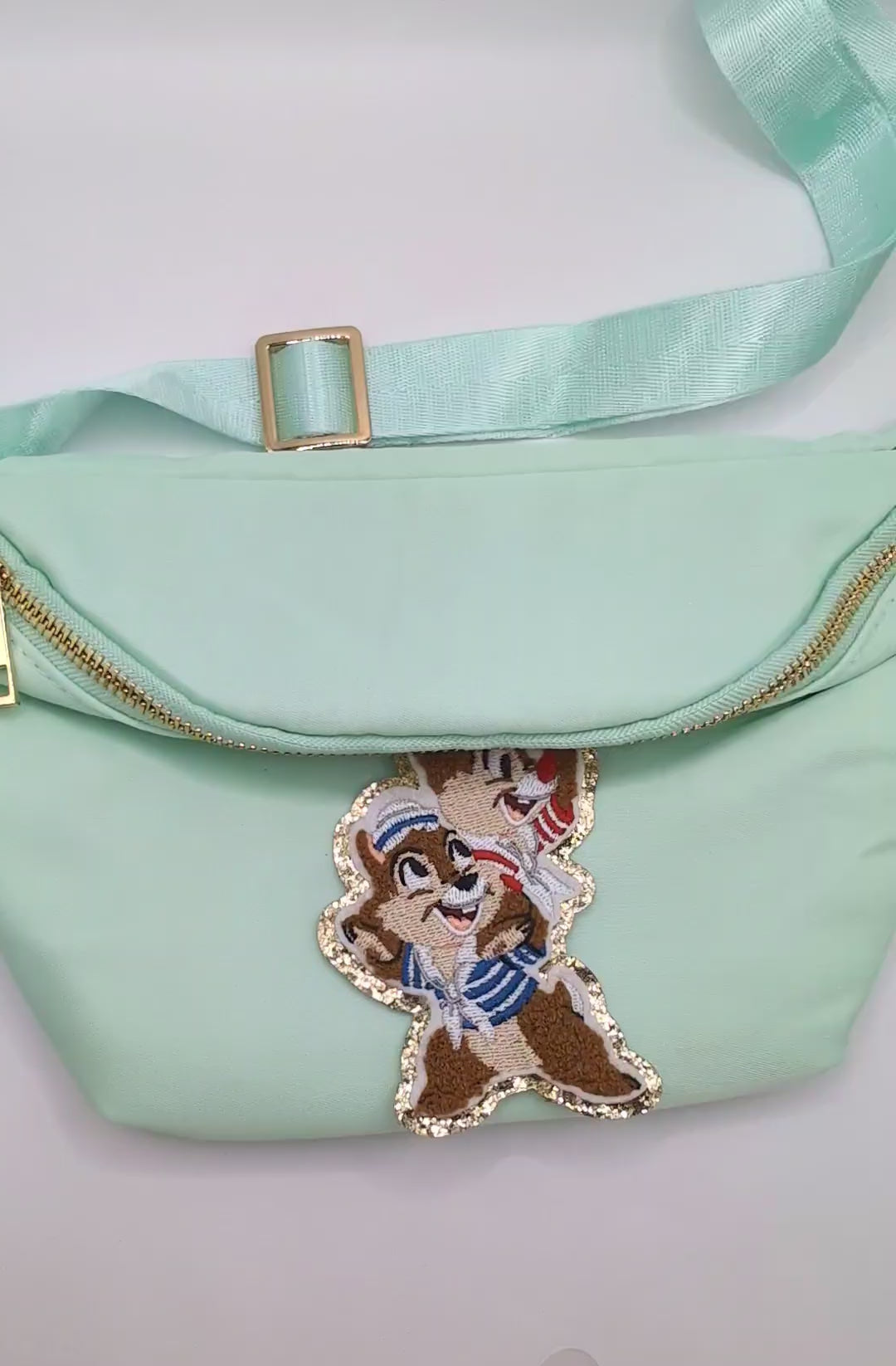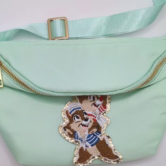 ✨ Chip Munk Cruise Fanny Pack in Mint Green. Belt Bag for Magical Holidays. (Please note the embroidered patch is just positioned into place for photos and will be sewn on prior to delivery.