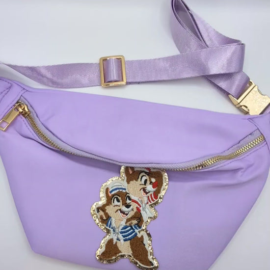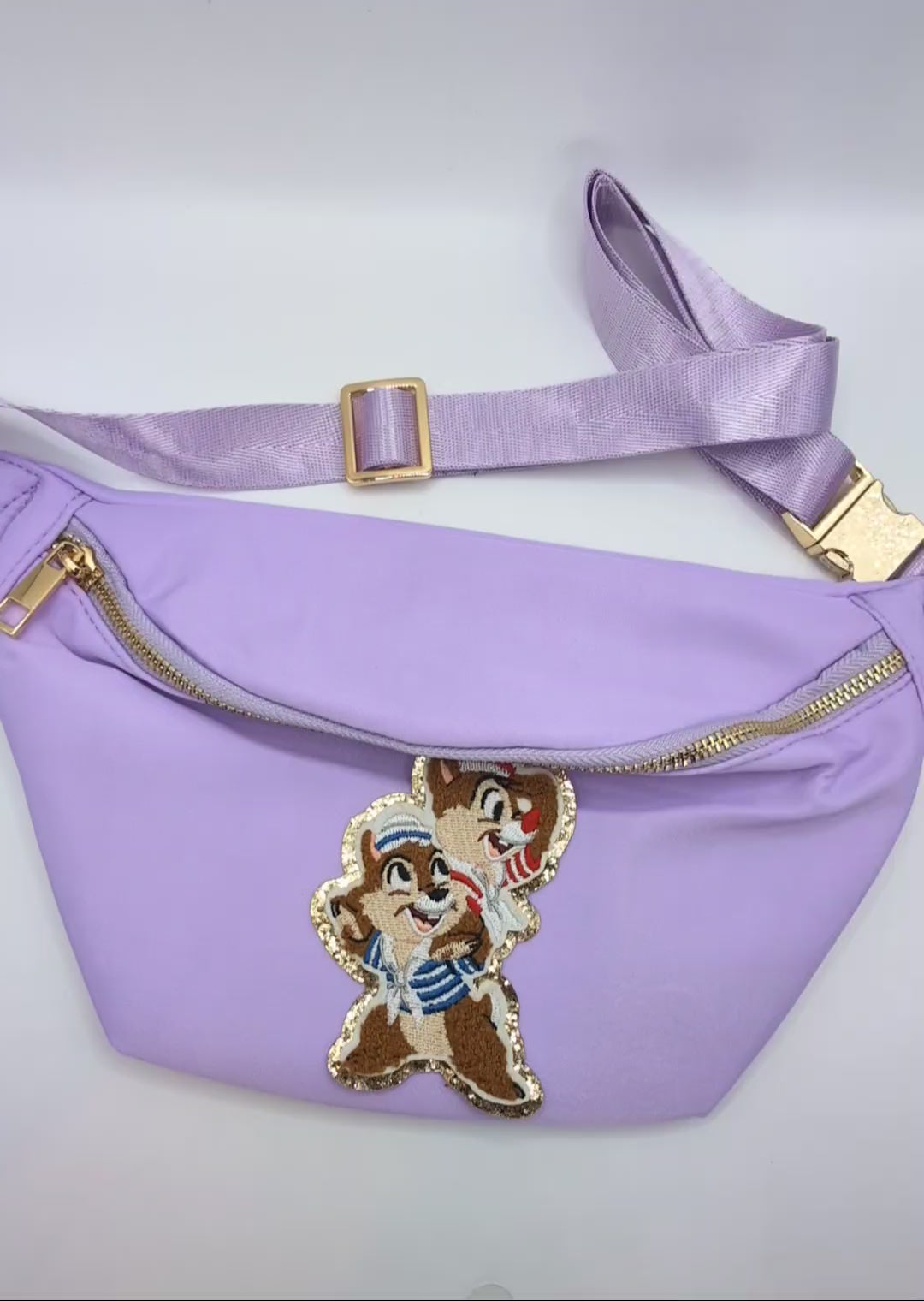 ✨ Chip Munk Cruise Fanny Pack in Lilac. Belt Bag for Magical Holidays. (Please note the embroidered patch is just positioned into place for photos and will be sewn on prior to delivery.
