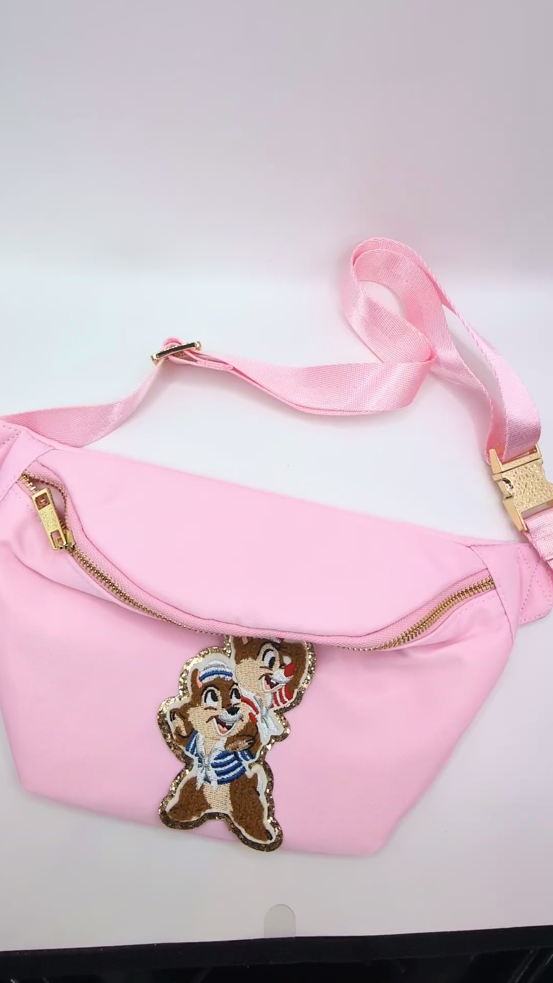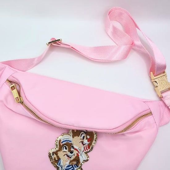 ✨ Chip Munk Cruise Fanny Pack in Pink. Belt Bag for Magical Holidays. (Please note the embroidered patch is just positioned into place for photos and will be sewn on prior to delivery.