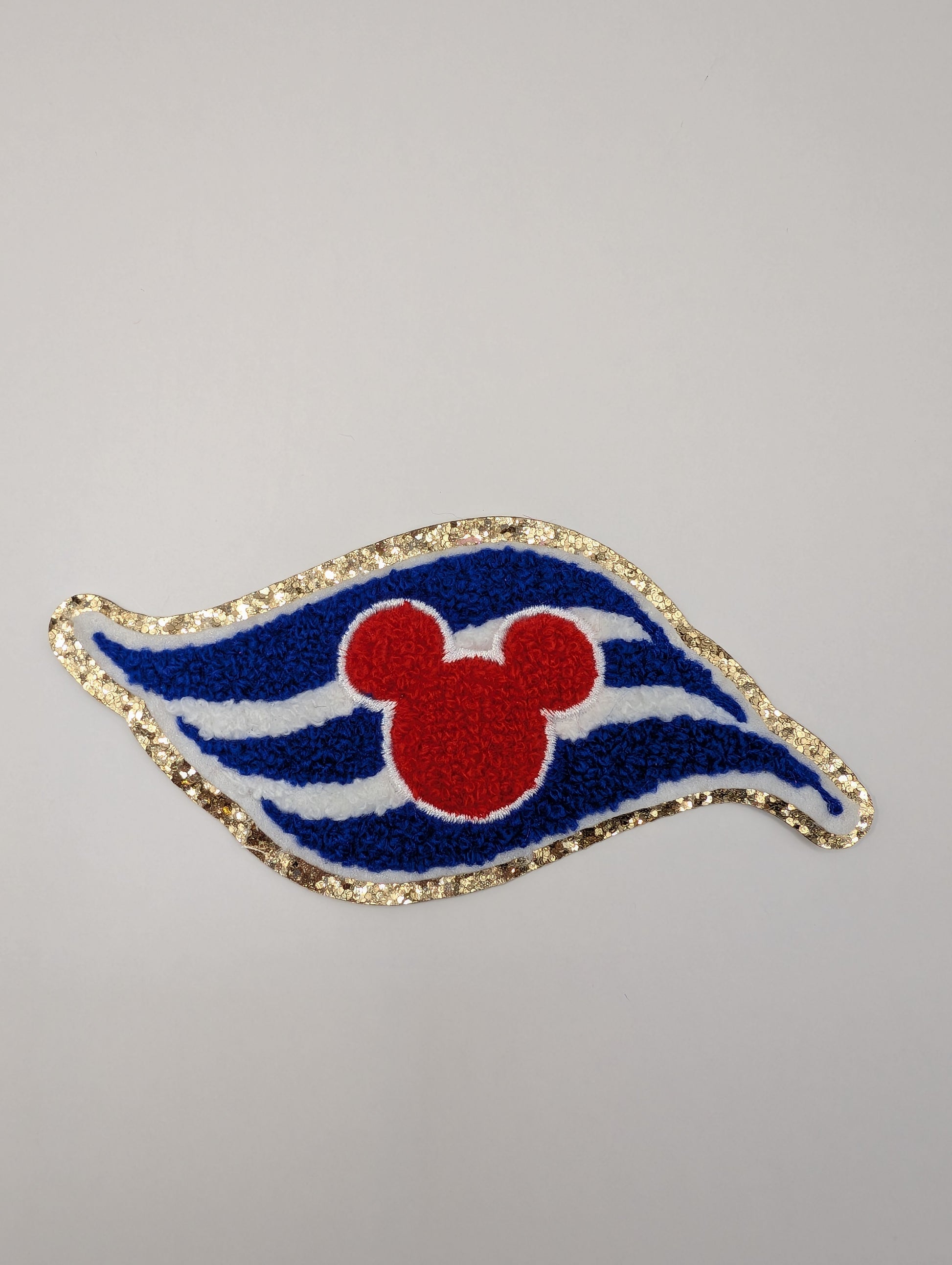 Add playful Cruise vibes to your outfits, bags, and crafts with this adorable patch. This patch combines soft chenille with detailed embroidery and sparkling gold glitter accents for extra cuteness. 🐿️🚢✨